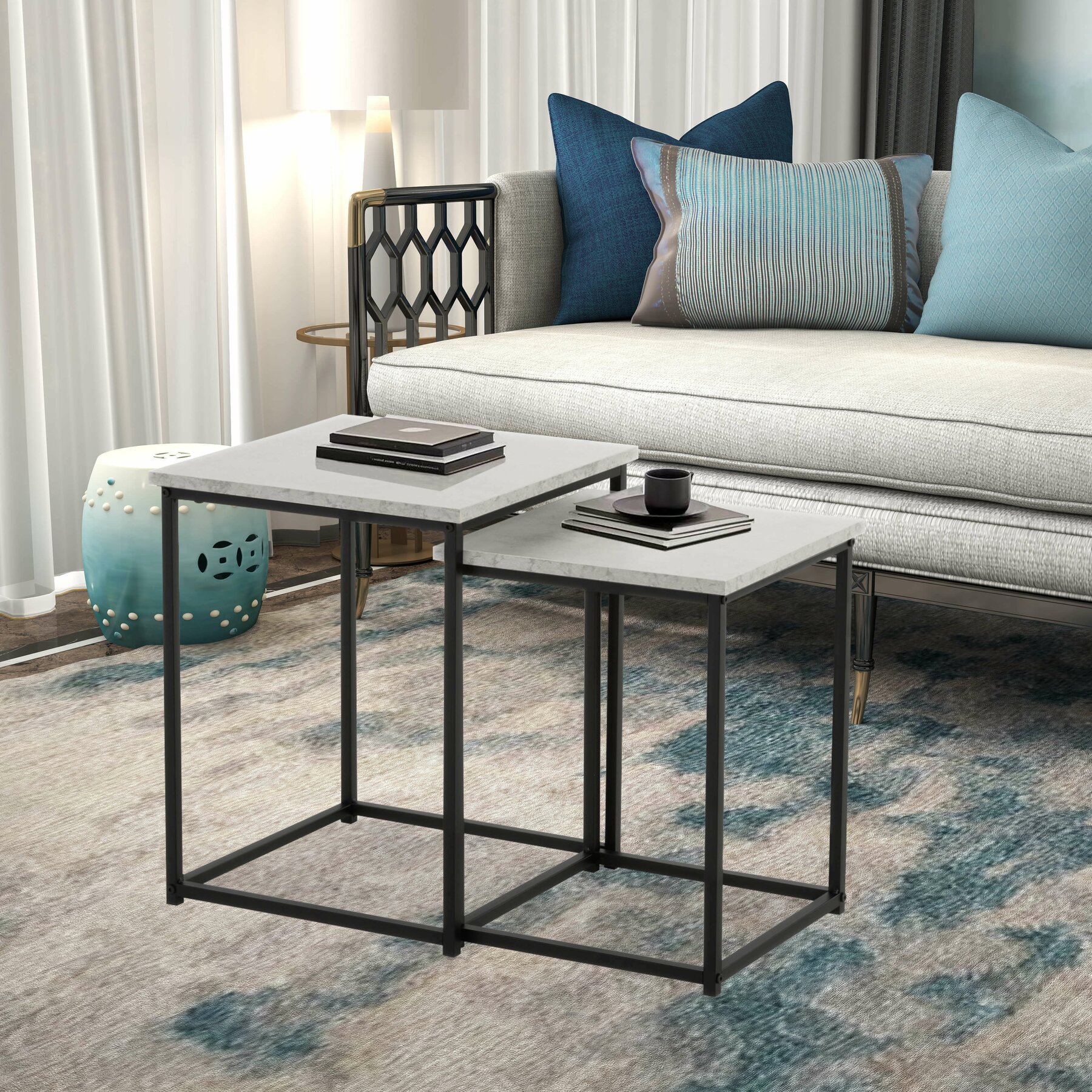 Set Masute Cafea Nestin Negru/Alb Marmura